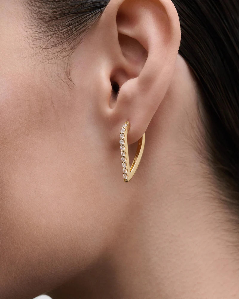 Orecchini a cerchio geometrici con forma ovale e zirconi bianchi