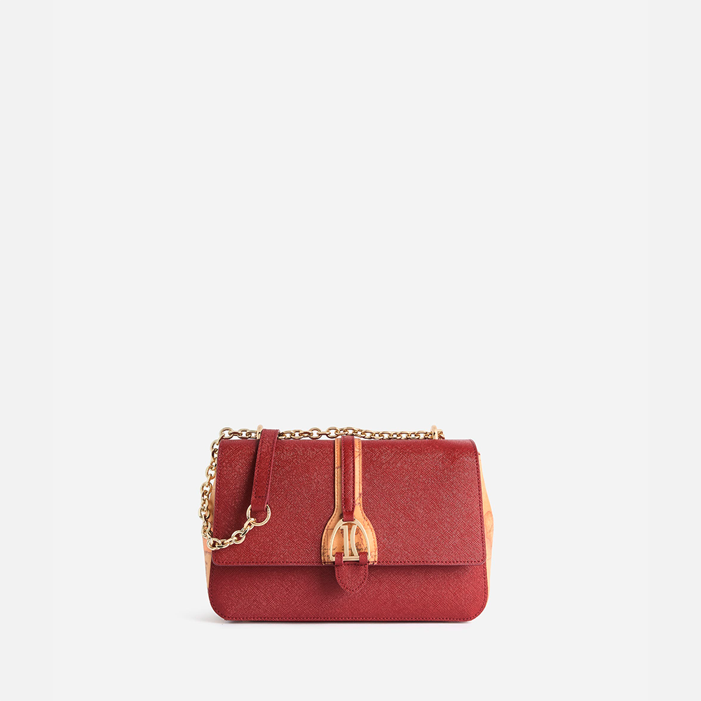 La tracolla con patta in tessuto saffiano entra nella Collezione Destiny Land diventando la nuova Horsy Bag. La chiusura con patta e magnete sfoggia un uovo dettaglio a staffa logato 1C che si abbina all'inserto in tessuto Geo Classic, intrecciando i motivi equestri della tradizione scozzese con l'heritage del brand. I fianchi morbidi in tessuto Geo Classic la rendono ancora più capiente, mentre la tracolla in catena e tessuto saffiano è scorrevole per offrire anche la portabilità sottospalla. Un modello intramontabile, declinato in un vivo Rosso Acero per look autunnali distintivi e iconici.