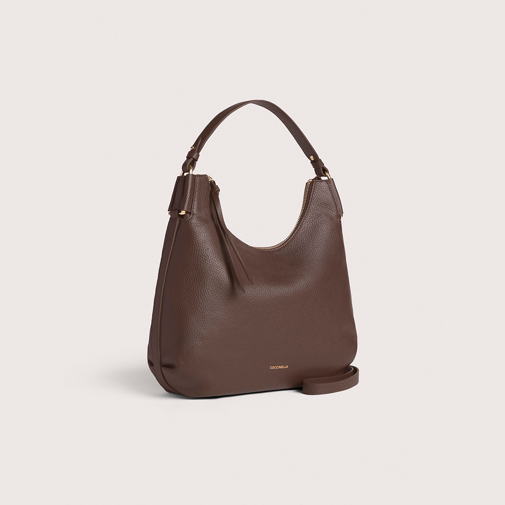 L'estetica della linea Coccinelle Rebekka racconta di un armonico equilibrio tra eleganza e funzionalità. Borse capienti e leggere dalla silhouette tondeggiante e dalla costruzione ricercata che esalta la morbidezza del materiale. Non manca il dettaglio d’identità che troviamo nel maxi plettro laterale che funge da attacco tracolla. Ogni modello è caratterizzato da una pratica e sicura chiusura con zip, perfetta per accompagnare la donna nella sua quotidianità. Questo modello è realizzato in pelle lavorata tramite specifici macchinari e poi bottalata al fine di mantenerne la morbidezza. È una pelle molto resistente che si presta a una facile pulizia, ideale per un uso quotidiano.