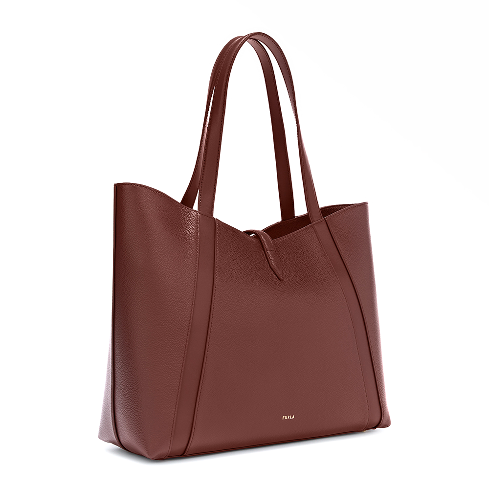 Super capiente nel formato ed elegante nella silhouette con orientamento orizzontale. Furla Goccia è la tote in pelle granata rifnita da dettagli in pelle liscia dall'allure versatile e contemporaneo. Impreziosita dal particolare hardware cilidrinco in finitura lucida con logo Arco, presenta un interno spazioso per riporre tutti gli essentials.