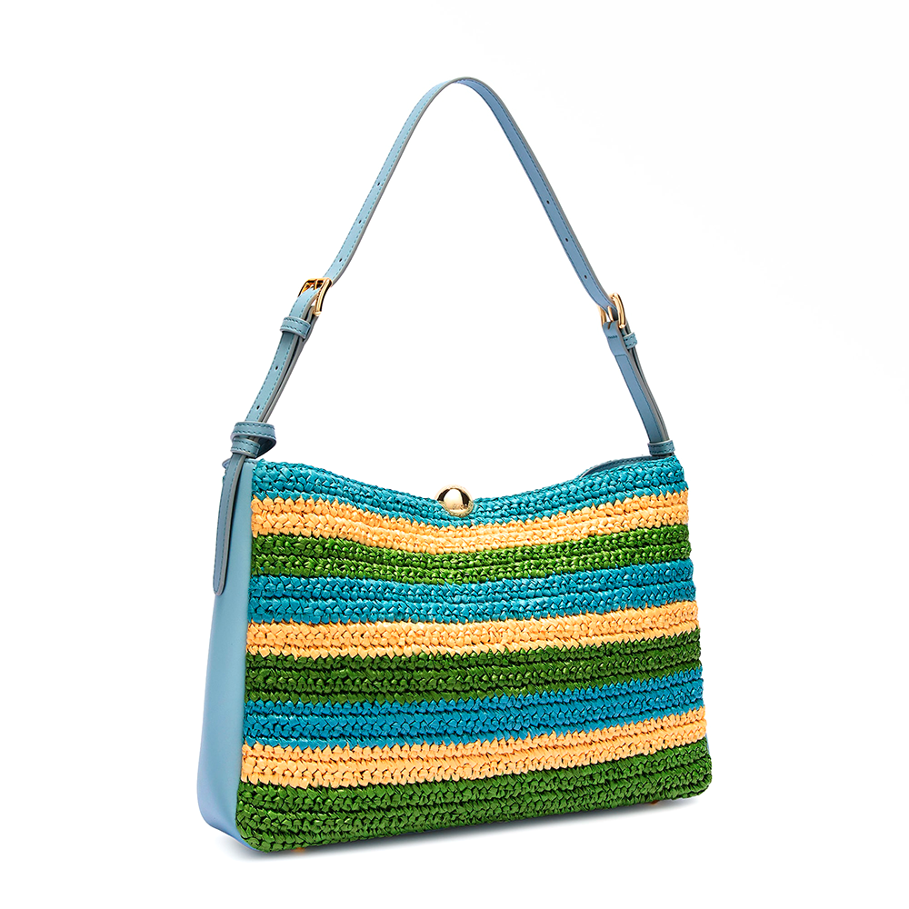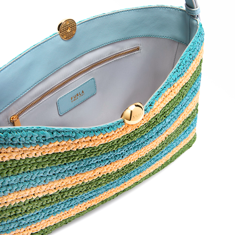 Design elegante dall'allure raffinato per la borsa Furla Sfera Soft. Realizzata in rafia crochet con disegno a righe e dettagli in pelle liscia, è impreziosita dall'hardware rotondo a Sfera che ricrea un naturale movimento di drappeggio. Le ampie dimensioni sono perfette per riporvi tutti gli effetti personali e la struttura flessibile si adatta all'indosso a spalla.