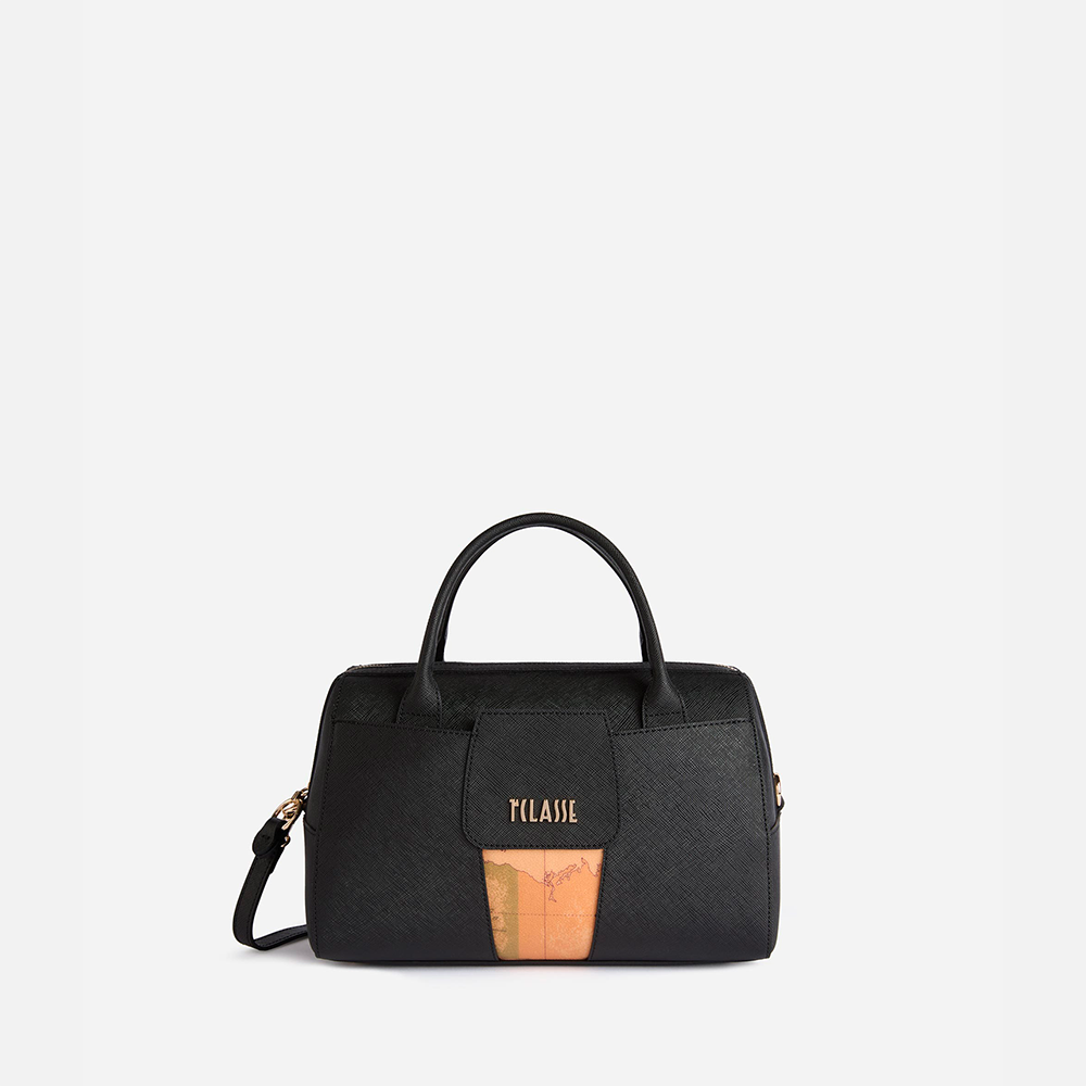 Il fascino retrò del bauletto incontra l'attitude moderna della linea in tessuto saffiano Windy City, sfoggiando un nuovo design ispirato all'architettura urbana scozzese. La linguetta sagomata con maxi logo 1ᴬ Classe apre una tasca piatta frontale e sormonta uno scorcio di tessuto Geo Classic, richiamando le finestre degli edifici storici.