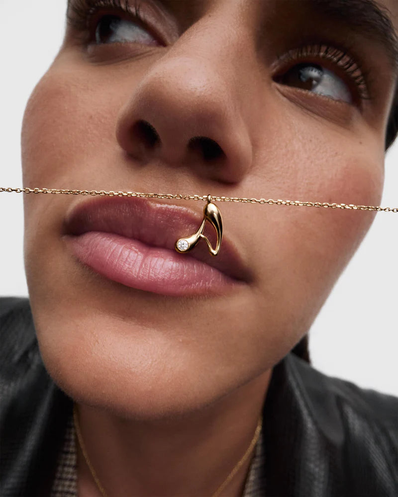 Collana in argento sterling placcato oro, con ciondolo iniziale A dalle linee morbide e sinuose.