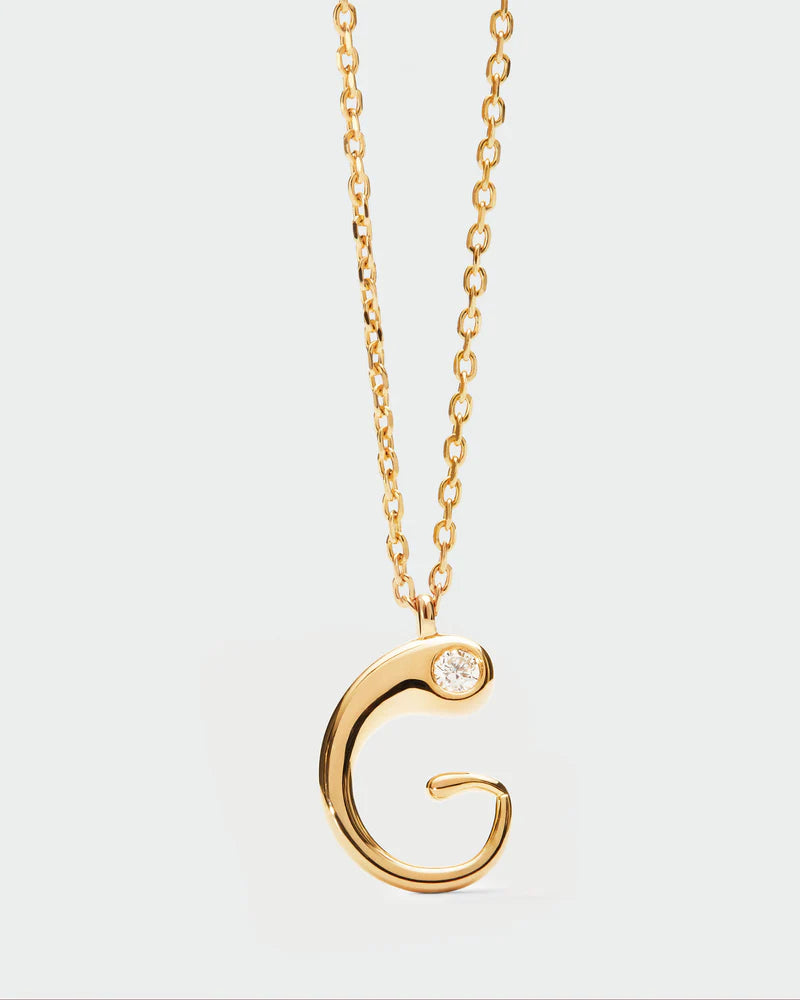 Collana in argento sterling placcato oro, con ciondolo iniziale G dalle linee morbide e sinuose.