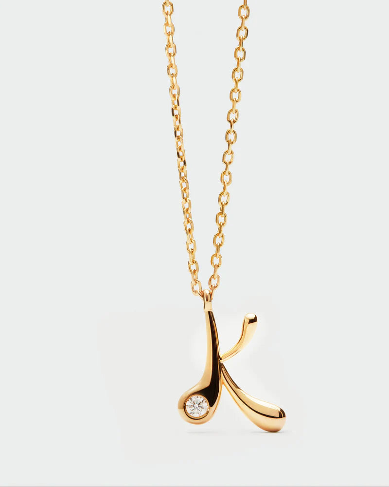Collana in argento sterling placcato oro, con ciondolo iniziale K dalle linee morbide e sinuose.