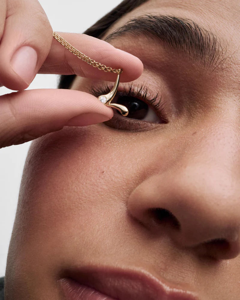 Collana in argento sterling placcato oro, con ciondolo iniziale L dalle linee morbide e sinuose.