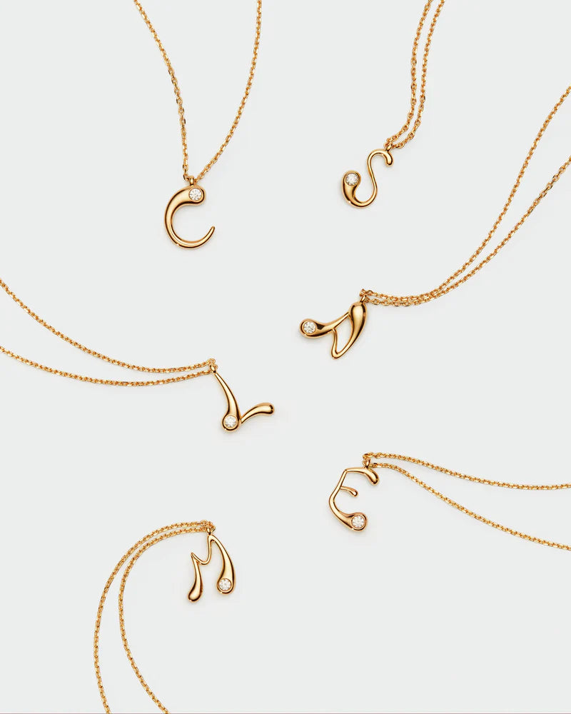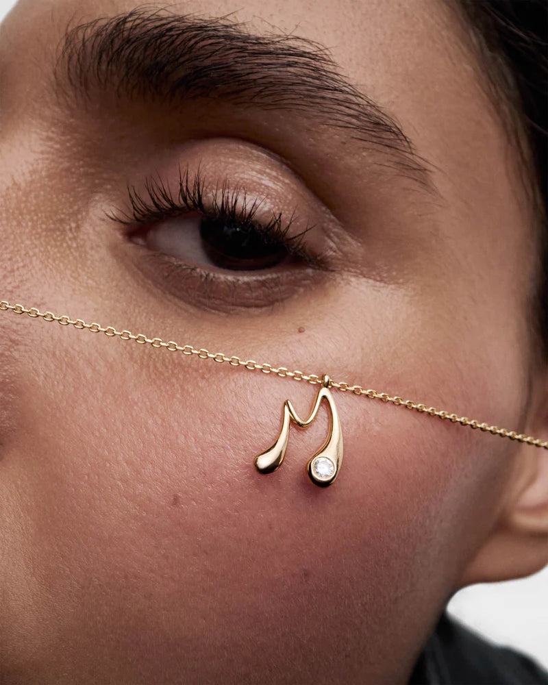 Collana in argento sterling placcato oro, con ciondolo iniziale M dalle linee morbide e sinuose.