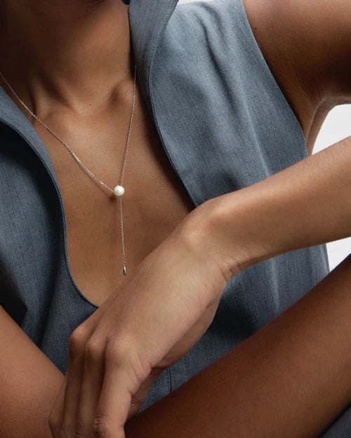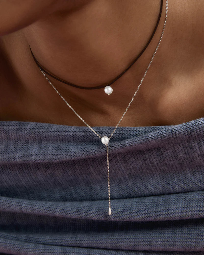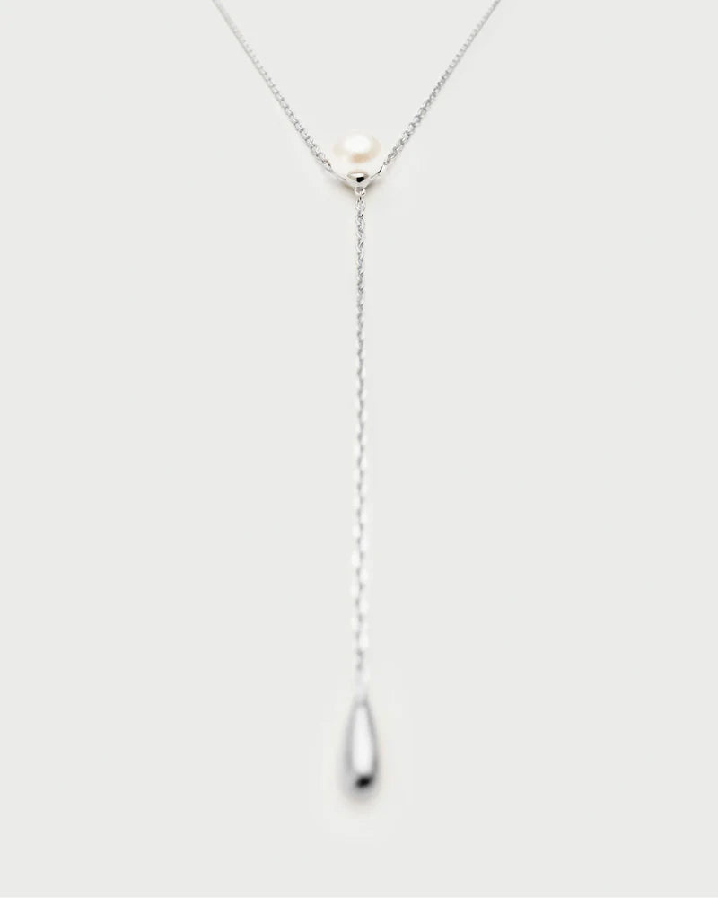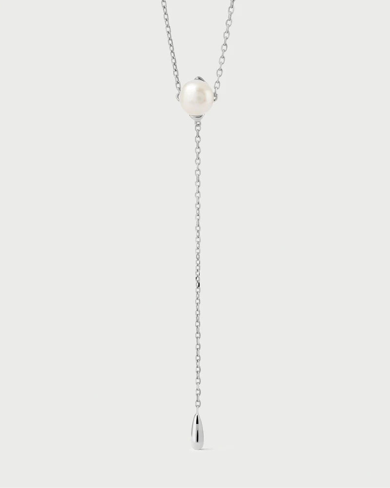 Collana cravatta in argento con perla.