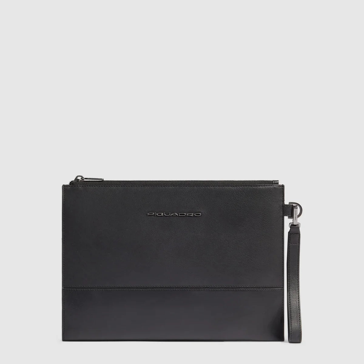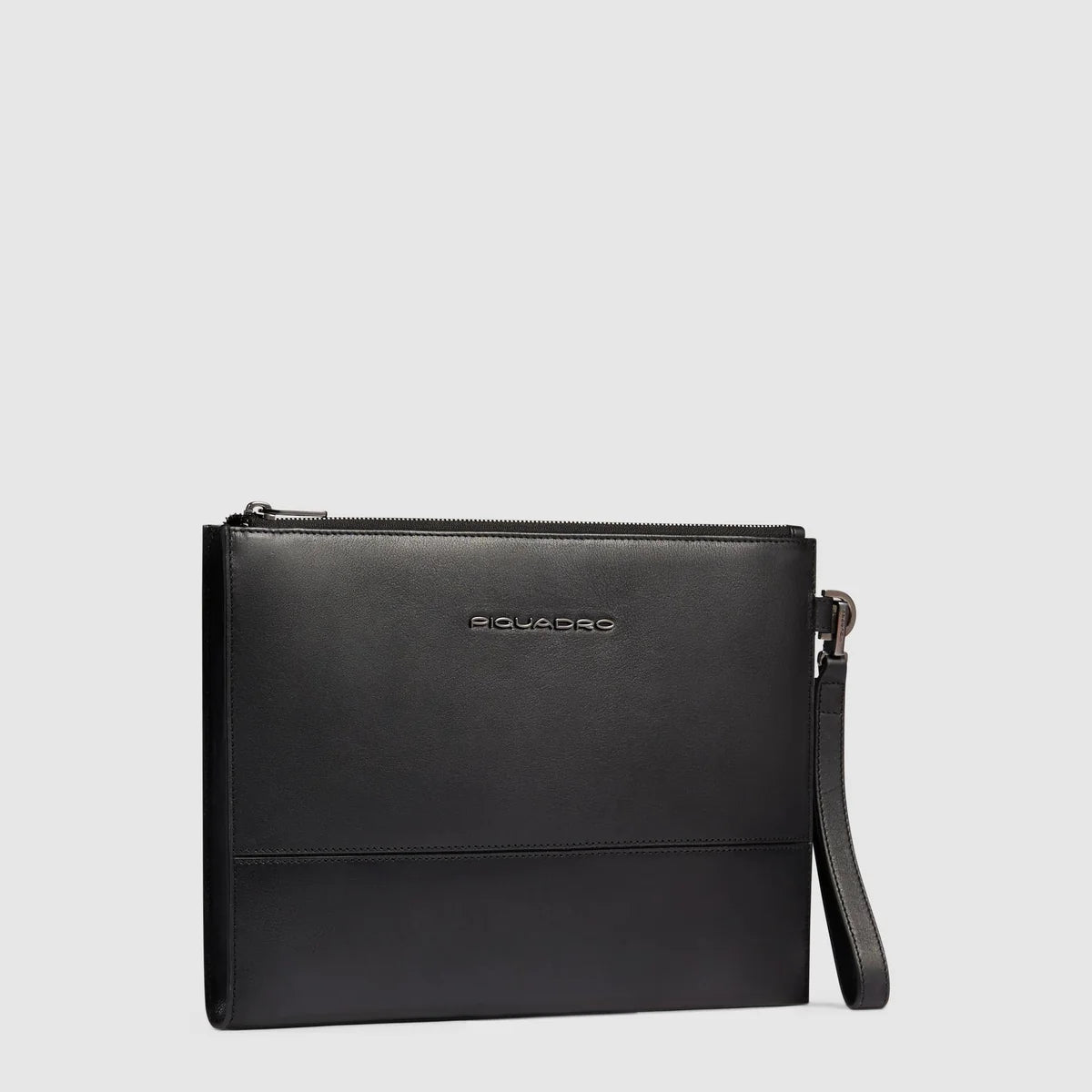 Pochette uomo porta iPad®Pro 11" in pelle con tasche per AirPods® e Piquadro Smart Tracker.