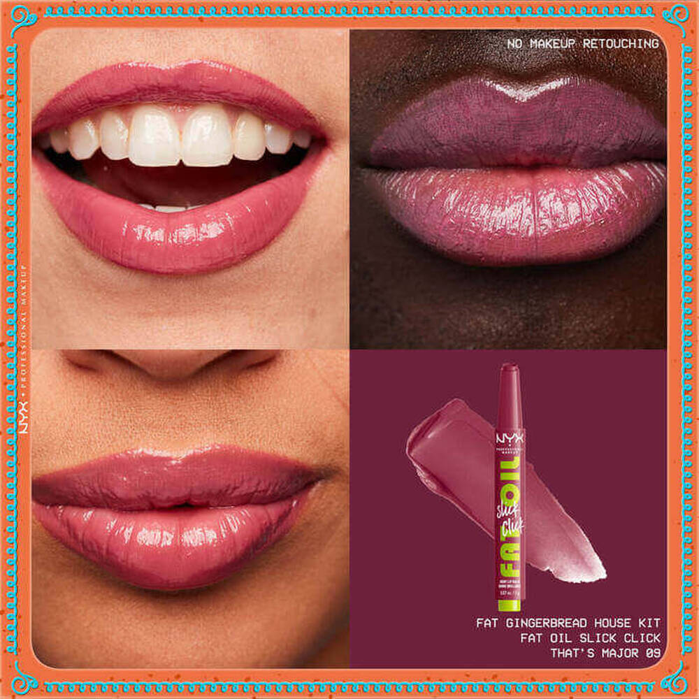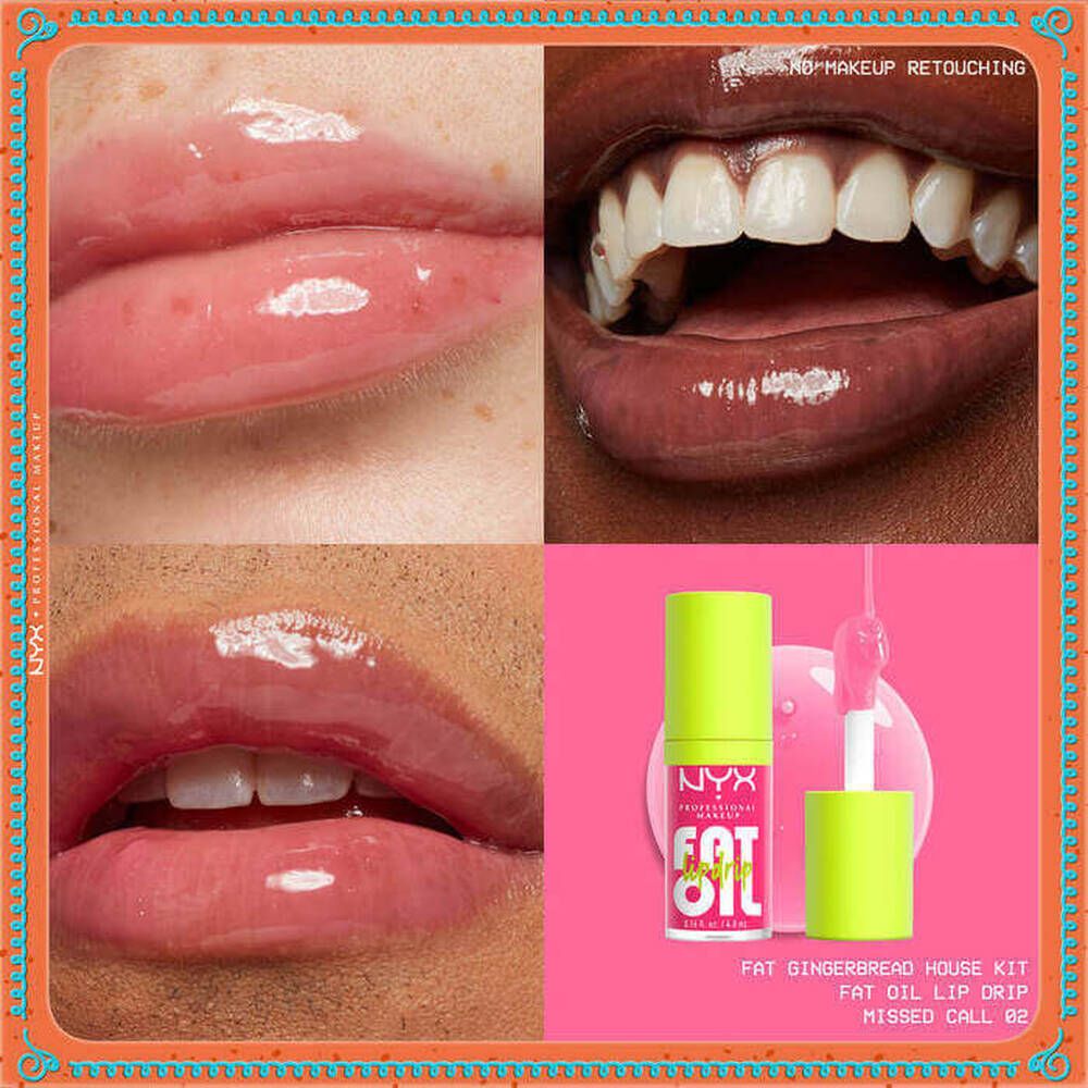 Concediti la dolcezza delle feste con il NYX Professional Makeup Holiday Fat Gingerbread House Kit! Questo set in edizione limitata include i gloss Fat Oil Lip Drip e i balsami labbra Fat Oil Slick Click, ispirati alle vibes cozy delle feste. Idratazione fino a 12 ore e finish ultra brillante ma non appiccicoso: le tue labbra saranno morbide, idratate e super glossy.