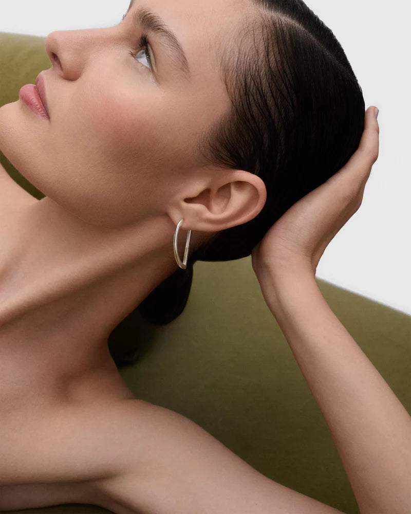 Orecchini a cerchio grandi geometrici in argento con forma ovale asimmetrica