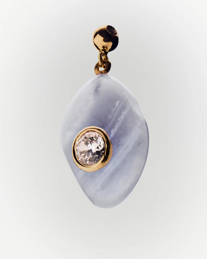 Charm pietra azzurro dalla forma asimmetrica con zirconi per collana o braccialetto.