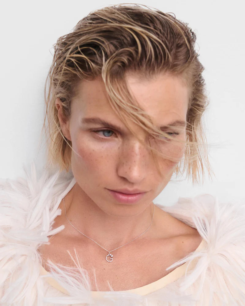 Ciondolo con l’iniziale G in oro bianco e dettagli di diamanti