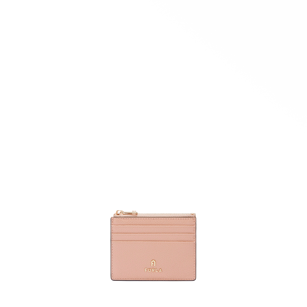 In formato compatto per essere custodito in ogni borsa. Il portacarte Furla Camelia è realizzato in pelle dalla leggera texture stampata ed è ideale per contenere anche contanti, monete e ricevute nello scomparto superiore.