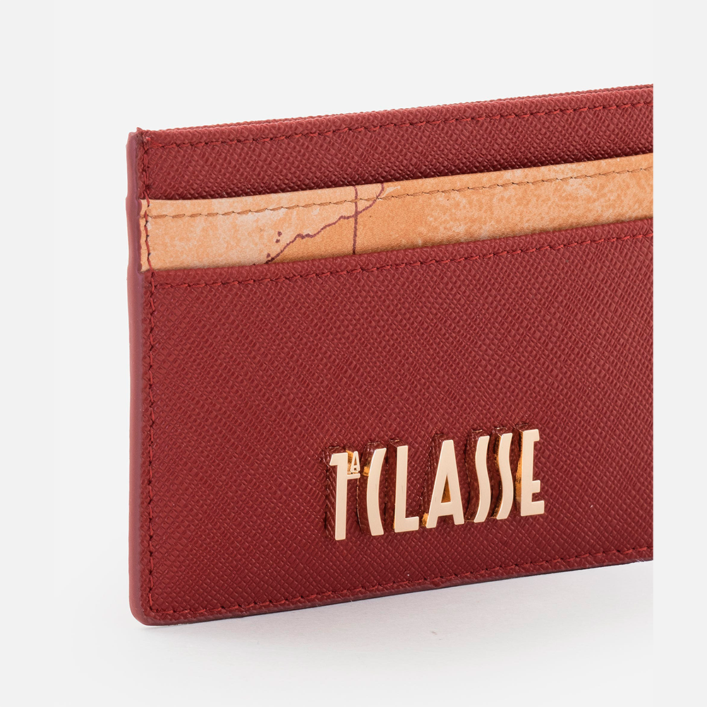 Portacarte in tessuto goffrato stampa saffiano, reso inconfondibile dall'inserto in nappa stampa Geo Classic e dal maxi lettering 1ᴬ Classe in oro chiaro. Tascabile e originale, saprà essere una gradita idea regalo, distintiva grazie al profondo color Verde Muschio.