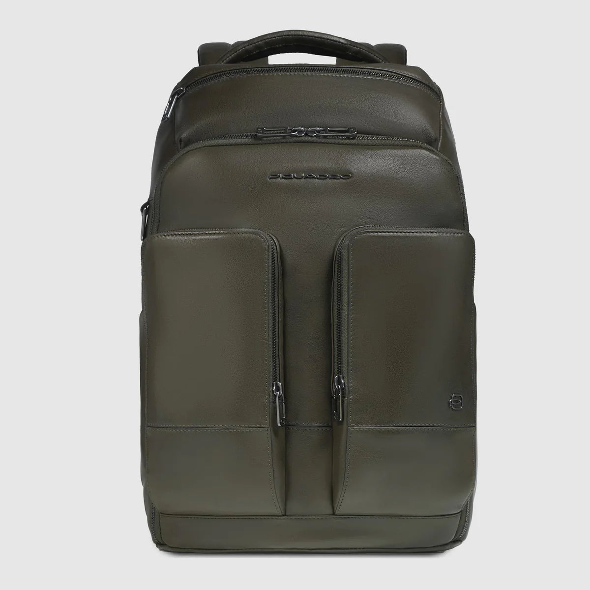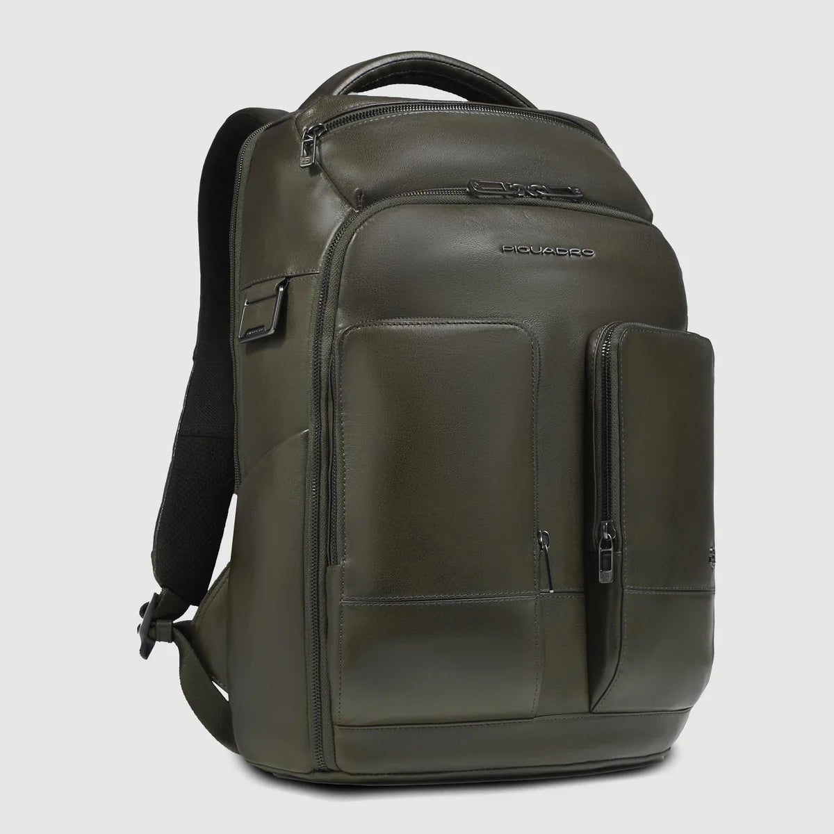 Zaino uomo personalizzabile in pelle porta pc e iPad® con cinghia pettorale, portaocchiali, protezioni antiurto e RFID.