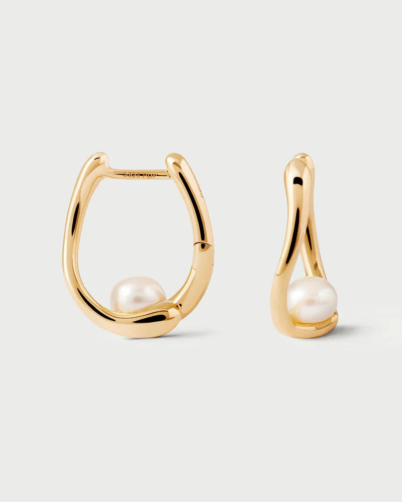 Orecchini a cerchio in argento placcato oro con un delicato dettaglio di perla