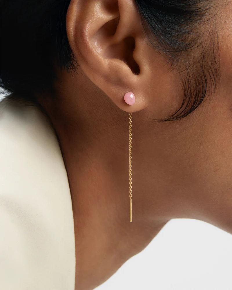 Orecchini stile cascata in argento placcato oro con rodocrosite