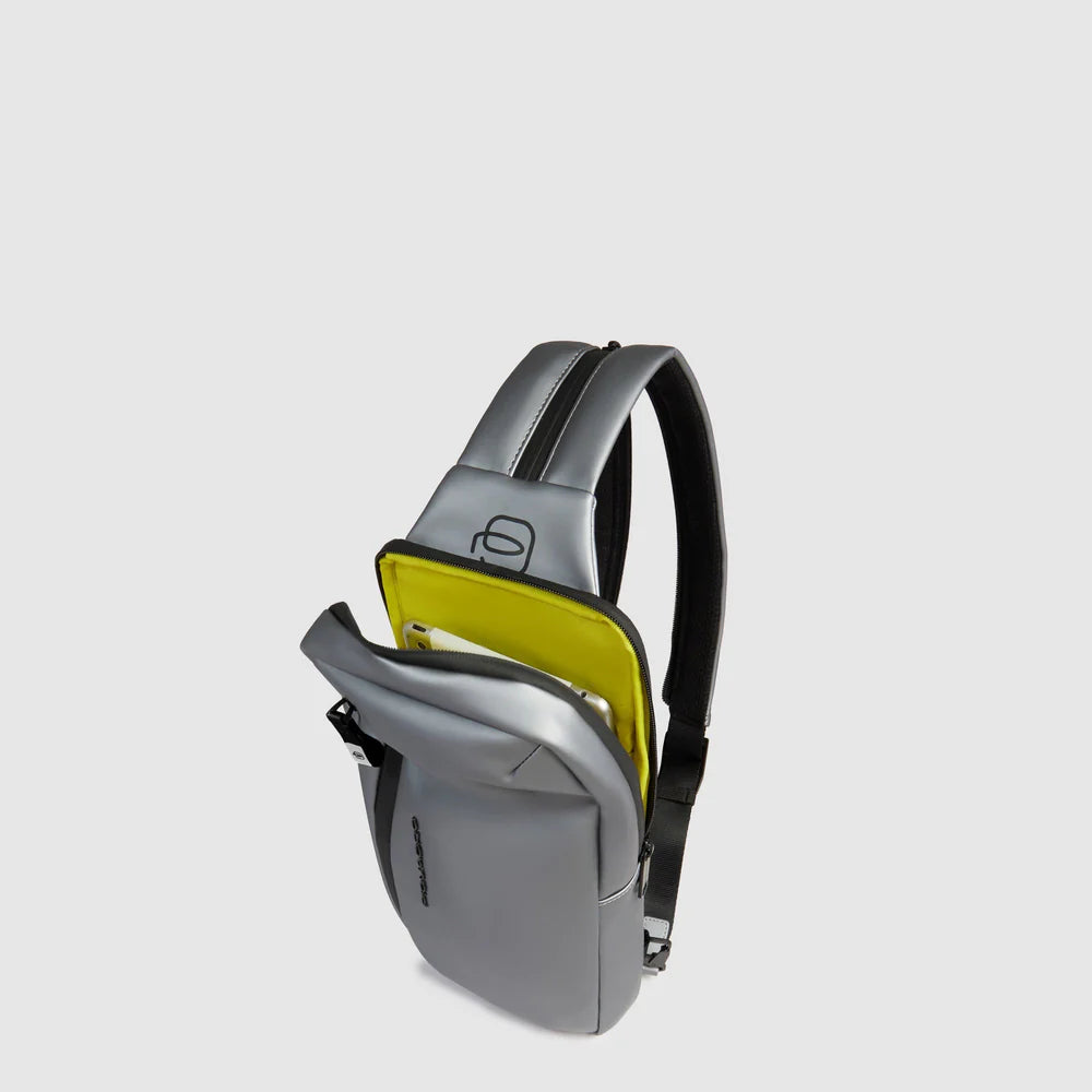 Zaino monospalla porta iPad®mini in tessuto gommato resistente all'acqua con protezione RFID e tasca per CONNEQU 4.0