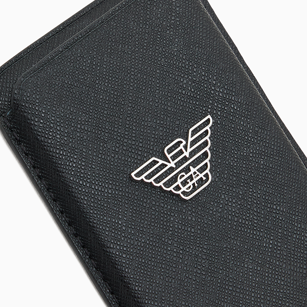 Portacarte con pratico supporto magnetico da attaccare sul retro dello smartphone: un nuovo accessorio che offre un maniera moderna e pratica di avere le carte a portata di mano, aggiungendo un touch unico al proprio device. Una proposta di piccola pelletteria introdotta questa stagione che combina design essenziale e di charme a nuove tonalità fresche e vibranti, caratterizzata da un finish stampa saffiano e personalizzata dal logo aquila sagomato, traforato e smaltato in tono.