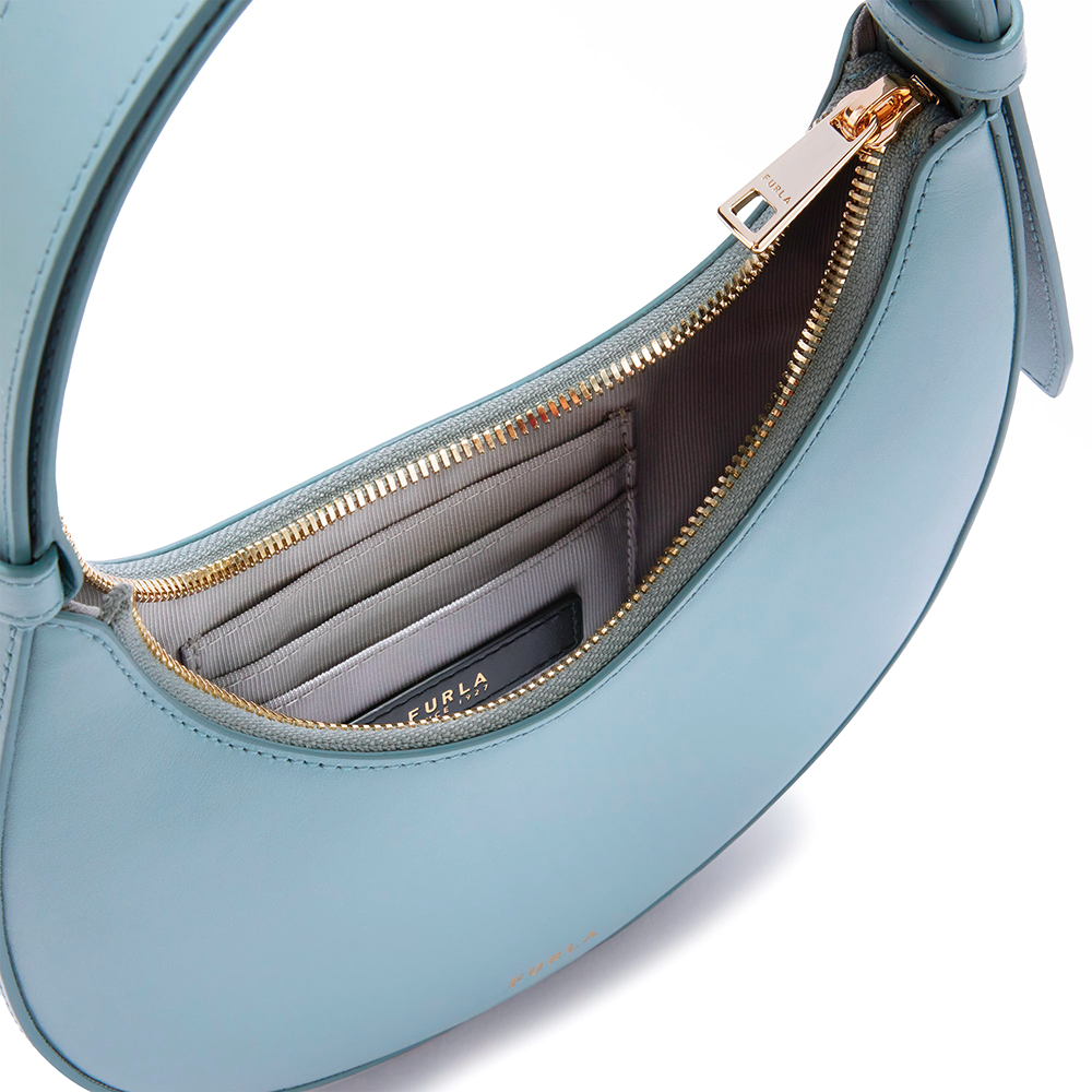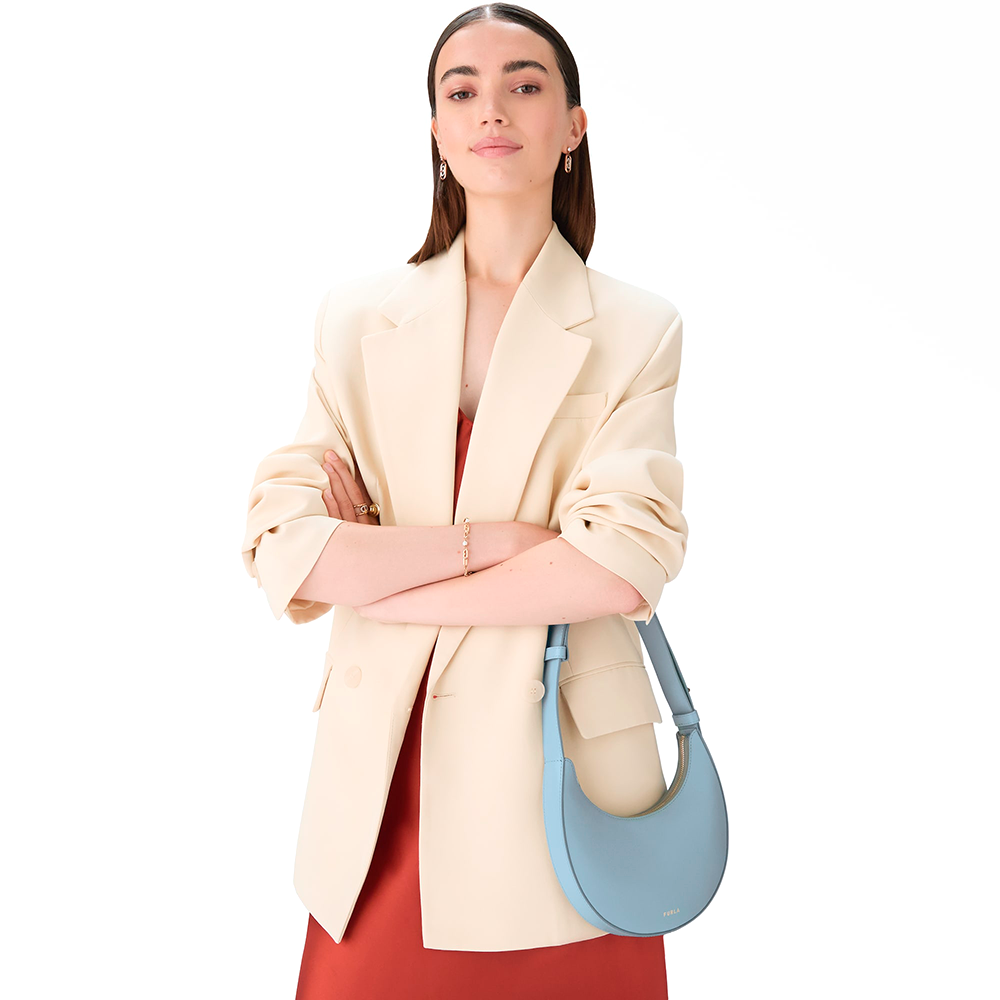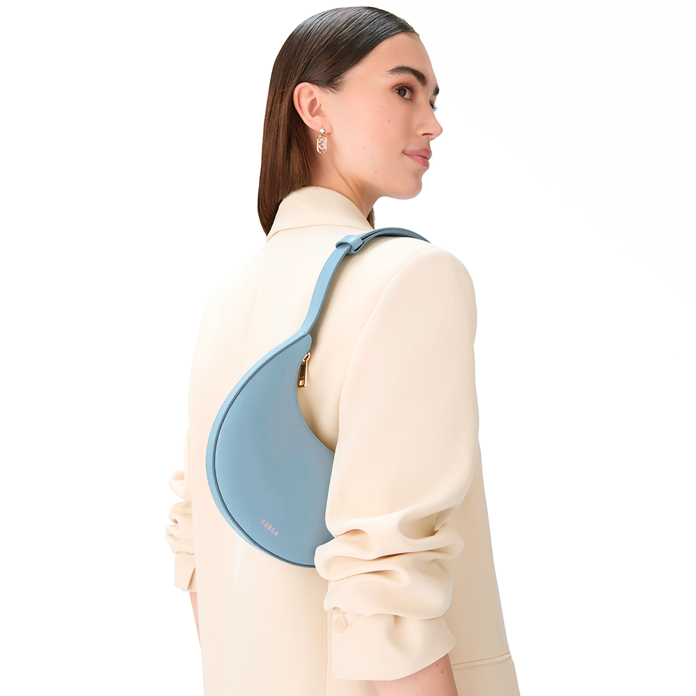 Mini formato e spazio compatto ideale per avere con sé tutti gli essentials. Furla Delizia è un condensato di pura eleganza. La borsa con struttura rigida a mezzaluna è realizzata in morbida pelle dal tocco setoso e liscio. Comoda da indossare a spalla è perfetta anche per il trasporto a mano grazie alla tracolla regolabile.