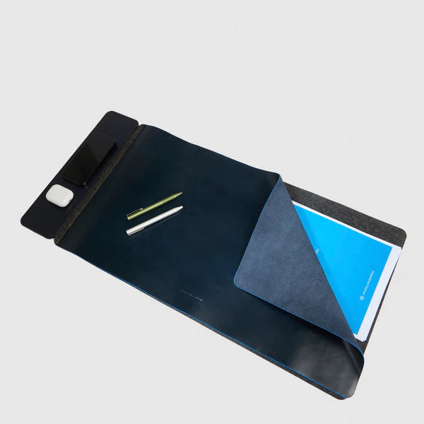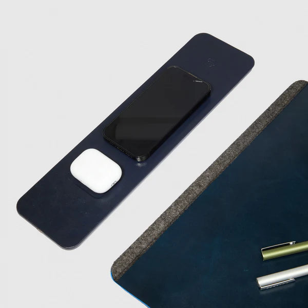 Sottomano in pelle con basi ricarica wireless 15W Blu